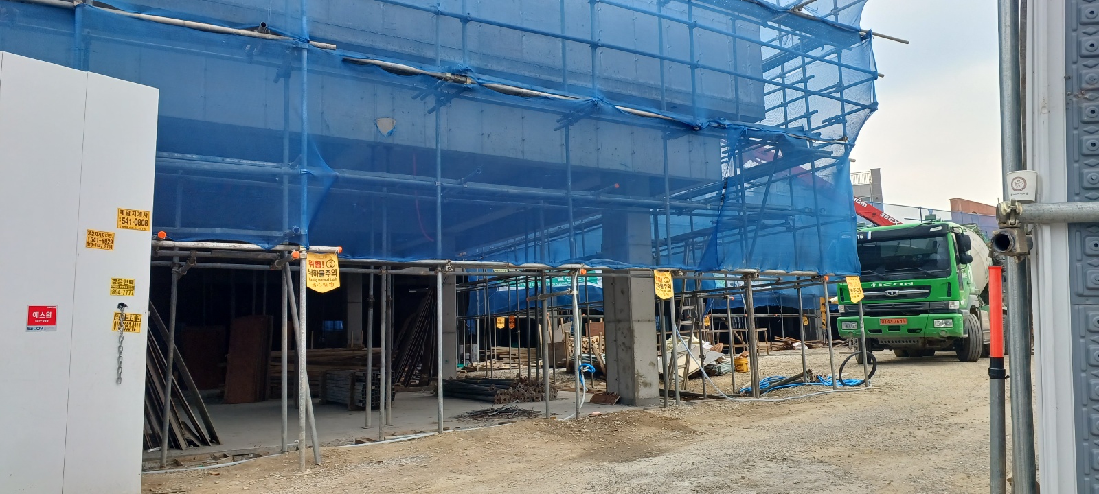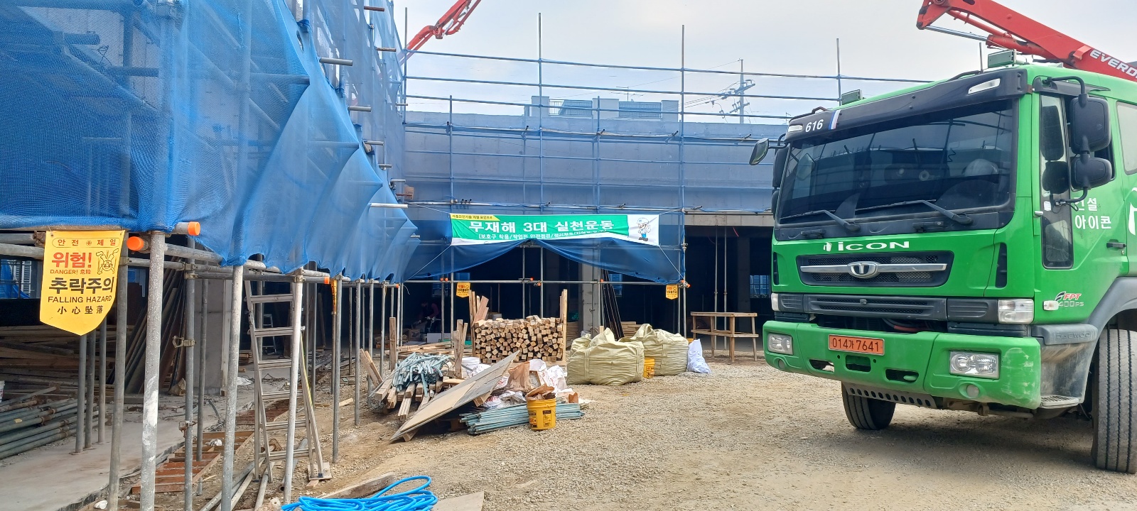 사진에서 보듯이 원래는 이자리에 3동의 옷가게가 있었는데 싹 밀고 새롭게 ㄱ자모양의 단층상가를 짓는 중이며 5월초에 준공예정을 목표로 한창 공사가 진행중입니다.