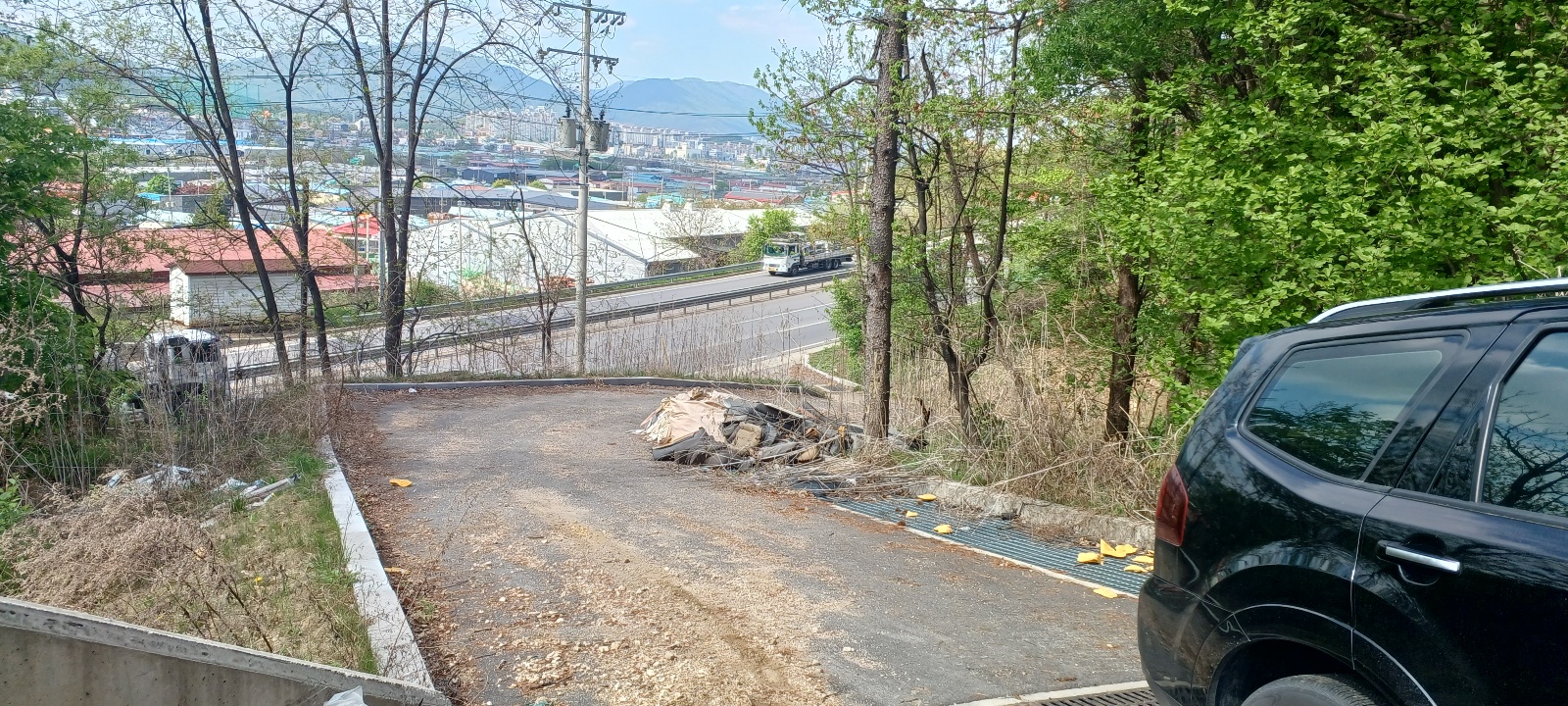 왕복 4차선 도로에 인접해있으며 진입하는 도로는 현재 바로 꺾여서 들어가게 해놓았기때문에 후에 도로점용을 받아서 진입도로를 새로 만들면 될거구요