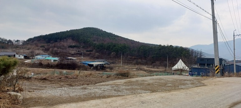 사진에서 보듯이 주택에서 바라보는 산봉우리가 앞면 옆면으로 다 보입니다. 풍수학자가 말하기를 산봉우리가 2개가 보이면 쌍봉이라해서 명당자리라고 합니다.