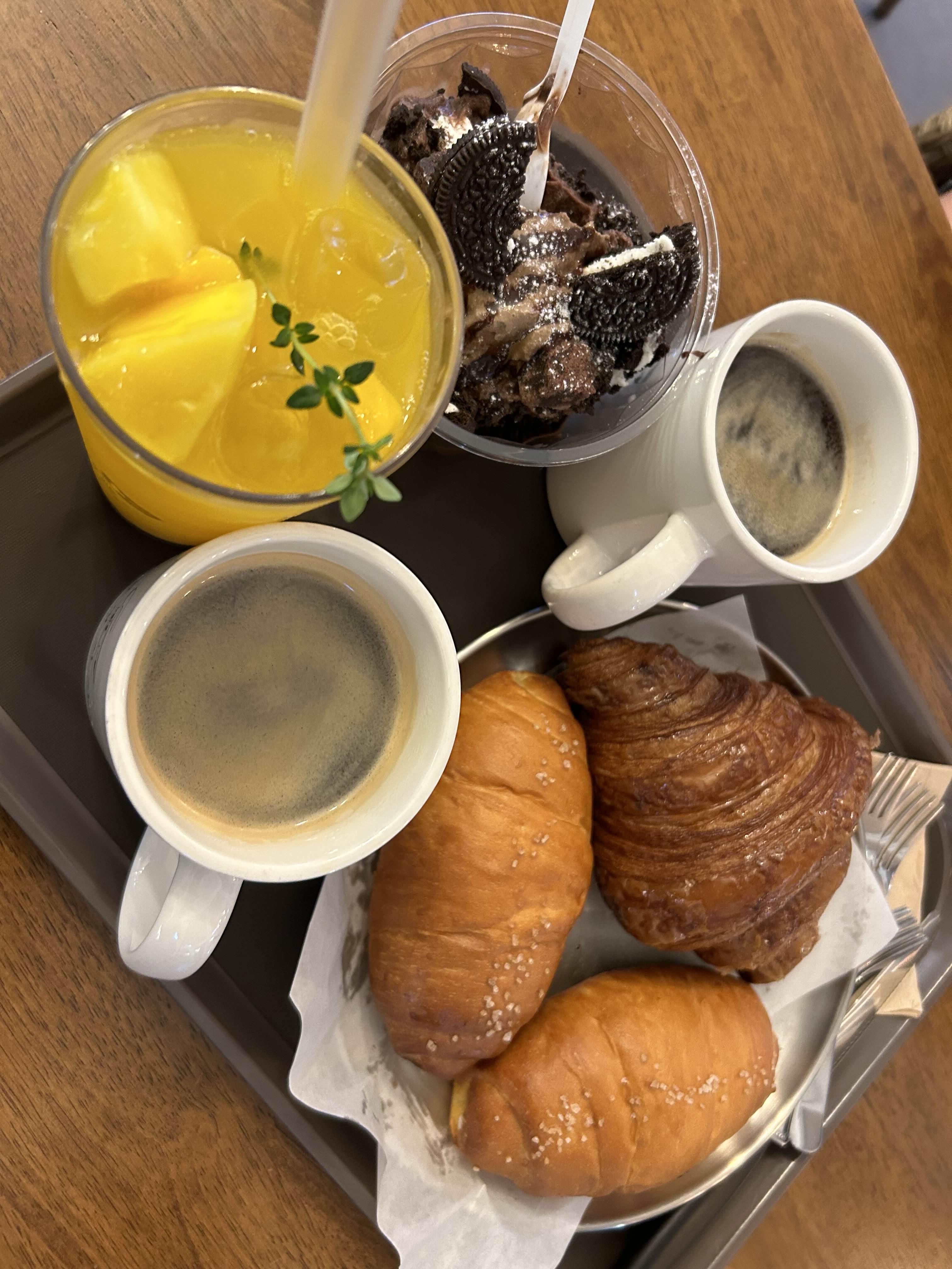 저희 가족은 소금빵, 크로와상, 아메리카노, 망고에이드, 악마의 초코빙수 ㅋㅋ 이렇게 시켰어요!