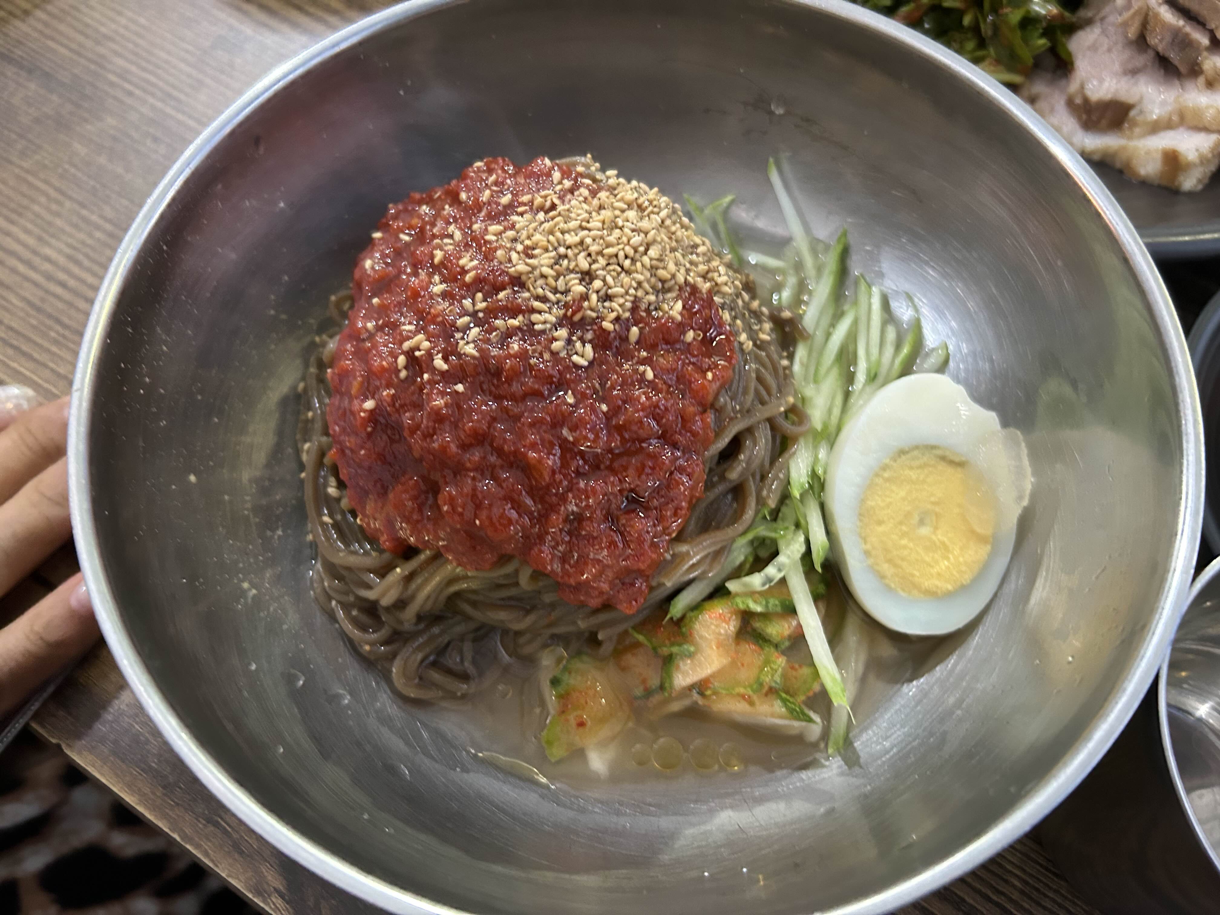 양이 충분히 나와서 가족이 갔을 때 물막국수, 비빔막국수, 빈대떡, 수육 이렇게만 시키셔도 배부르게, 메뉴도 다양하게! 먹을 수 있어요~^^